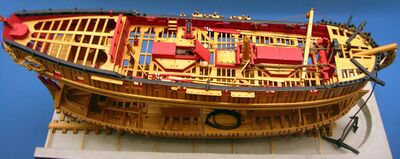 The French design was copied by the Royal Navy,[2] who continued to refine the class over the next century or more, after Huguenot exiles brought designs over to England and the United Provinces. The side-by-side, forward-pointing mortars were replaced in the British designs by mortars mounted on the centerline on revolving platforms. These platforms were supported by strong internal wooden framework to transmit the forces of firing the weapons to the hull. The interstices of the framework were used as storage areas for ammunition.