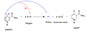 NADPH oxidase catalyzes the production of a superoxide free radical by transferring one electron to oxygen from NADPH.[2]