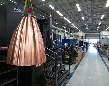 Initial component-level testing of Raptor technology began in May 2014, with an injector element test.[15][18] The first complete Raptor development engine, approximately one-third the size of the full-scale engines planned for the use on various parts of the Interplanetary Transport System, with approximately 1,000 kN (220,000 lbf) thrust, began testing on a ground test stand in September 2016. The test nozzle has an expansion ratio of only 150, in order to eliminate flow separation problems while tested in Earth's atmosphere.[19]