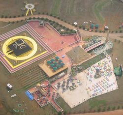 Central portion of Tama-Re, a village in the U.S. state of Georgia built in 1993 by the United Nuwaubian Nation of Moors, as seen from the air in 2002