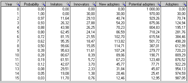 [math]\displaystyle{ \ \mbox{Potential adopters} = - \int_{0} ^{t} \mbox{New adopters }\,dt }[/math] [math]\displaystyle{ \ \mbox{Adopters} = \int_{0} ^{t} \mbox{New adopters }\,dt }[/math]