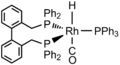 The hydroformylation of alkenes to give aldehydes is an important industrial process. Almost 6 million tons of aldehydes are produced by this method annually.[9] Rhodium complexes containing diphosphine ligands are active hydroformylation catalysts. The ratio of linear to branched aldehyde product depends on the structure of the catalyst.[9][10]