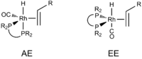 One intermediate, [Rh(H)(alkene)(CO)L], exists in two different isomers, depending on the position of phosphine ligands (Figure 4).[9]