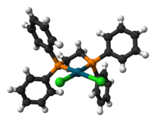 The bite angle of a diphosphine ligand also indicates the distortion from the ideal geometry of a complex based on VSEPR models. Octahedral and square planar complexes prefer angles near 90° while tetrahedral complexes prefer angles near 110°. Since catalysts often interconvert between various geometries, the rigidity of the chelate ring can be decisive.[8] A bidentate phosphine with a natural bite angle of 120° may preferentially occupy two equatorial sites in a trigonal bipyramidal complex whereas a bidentate phosphine with a natural bite angle of 90° may preferentially occupy apical-equatorial positions.[9] Diphosphine ligands with bite angles of over 120° are obtained using a bulky, stiff diphosphine backbones.[8] Diphosphines of wide bite angles are used in some industrial processes.