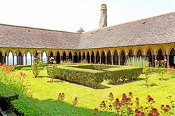 Orchards and cemetery gardens were also tended to in medieval monasteries. The vegetation would provide fruit, such as apples or pears, as well as manual labor for the monks as was required by the Rule of Saint Benedict. According to Saint Benedict, idleness is the enemy of the soul, and for a monk, daily life was meant to be spent learning about the Lord and fighting that spiritual battle for the soul.[7] So, monks used manual labor and spiritual reading to keep busy and avoid being idle. Cemetery gardens, which tended to be very similar to generic orchards, also acted as a symbol of Heaven and Paradise, and thus provided spiritual meaning.