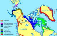 Yup'ik groups comprise a huge area stretching from Eastern Siberia through Alaska and Northern Canada (including Labrador Peninsula) to Greenland. Shamanistic practice and beliefs have been recorded at several parts of this vast area crosscutting continental borders.[65][66][67]
