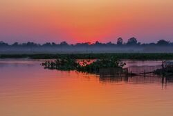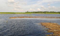 In north eastern Bangladesh there are large water bodies called haors. A haor is a bowl shaped depression which is flooded every year during monsoon. Throughout the rainy season a haor is such a vast stretch of turbulent water that it is thought of as a sea, within which the villages appear as islands. It remains under water for seven months of the year. During the dry season water drains out leaving small shallow lakes exposing rich soil extensively cultivated for rice.[2][3] In greater Comilla, Faridpur, Dhaka and Pabna districts the beel is sometimes referred to as baor.[1]