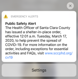 When the term "shelter-in-place order" was used by the authorities in the United States in responding to the outbreaks of Coronavirus disease 2019 (COVID-19) in 2020, people were not familiar with it as the term had been used in other emergency situations such as an active shooter which would require seeking a safe place to hide within the same building that the person already occupies until the situation is resolved.[16] This caused confusion to the residents under the order on exactly what they were supposed to do.[17] Later, the State of California used the term stay-at-home order instead.[18] Other US states started using the new term when they announced their statewide order.[19] Governor Andrew Cuomo of New York criticized anyone using the term "shelter in place" for his stay-at-home order as it would invoke panic due to its association with active shooting situations or nuclear wars.[20]