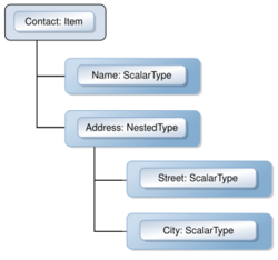 A developer can extend any of these types, or the base type Item, to provide a type for their custom data. The data contained in an Item is defined in terms of properties, or fields that hold the actual data. For example, an Item Contact may have a field Name that is a ScalarType, and one field Address, a NestedType, which is further composed of two ScalarTypes. To define this type, the base class Item is extended and the necessary fields are added to the class.[6] A NestedType field can be defined as another class that contains the two ScalarType fields. Once the type is defined, a schema has to be defined, which denotes the primitive type of each field, for example, the Name field is a String, the Address field is a custom defined Address class, both the fields of which are Strings. Other primitive types that WinFS supports are Integer, Byte, Decimal, Float, Double, Boolean and DateTime, among others.[6] The schema will also define which fields are mandatory and which are optional.[31] The Contact Item defined in this way will be used to store information regarding the Contact, by populating the properties field and storing it. Only those fields marked as mandatory needs to be filled up during initial save.[30] Other fields may be populated later by the user, or not populated at all. If more properties fields, such as last conversed date, need to be added, this type can be extended to accommodate them. Item types for other data can be defined similarly.