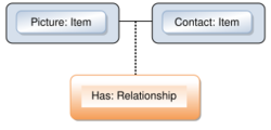 Relations are also exposed as properties. Each WinFS Item has two properties, named IncomingRelationships and OutgoingRelationships, which provide access to the set of relationship instances the item participates in. The other item which participates in one relationship instance can be reached through the proper relationship instance.[10][31]