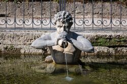 Gianlorenzo Bernini sculpted the "Neptune and Triton" fountain (1622–23) now in the Victoria and Albert Museum[82][83] and the Triton Fountain (1642–43) in Bernini Square, Rome.[84][85] There is differing opinion on what earlier works he may have drawn from near-contemporary works or examples from antiquity. He may have been influenced by Battista di Domenico Lorenzi's Alpheus and Arethusa (1568–70) or his Triton blowing the conch (late 1570s),[86] or Stoldo Lorenzi's Neptune fountain.[87] But Rudolf Wittkower has cautioned against exaggerating the influences of Florentine fountains.[87] It has been pointed out that Bernini had access to the Papal collection[lower-alpha 12] of genuine Greco-Roman sculptures, and worked with restoring ancient fragments,[90] although it is unclear if any Triton was among these. It is within the realm of possibilities that Bernini might have used as his model the ancient Altar of Domitius Ahenobarbus, which does include Triton in its composition.[91] The Triton of this altar, the Stoldo Lorenzi Triton and the Bernini Triton are all double-tailed, like a pair of human legs.[92]
