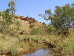 Alternatively, the Western Australia Gas Industry claims that the region takes its name from pilbarra, an Aboriginal word for the mullet that is available in local waters.[11] The Pilbara Creek (originally spelt "Pilbarra") is a tributary of the Yule River, a significant river in the region. Sea mullet and barramundi can still be caught in the Yule River today.[12] Pilbara Goldfield, discovered in 1885, was named after the creek, and the name later became associated with the region.[11]