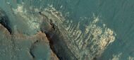 Close view of layers in Louros Valles, as seen by HiRISE under HiWish program Note this is an enlargement of a previous image.