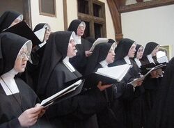 The Carmelite Sisters of the Most Sacred Heart wear a habit including cincture, rosary, scapular, and veil.[8] The Dominican Sisters of Mary Immaculate Province wear a habit consisting of tunic, belt, rosary, scapular, veil, and cappa or mantle.[9]