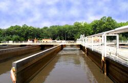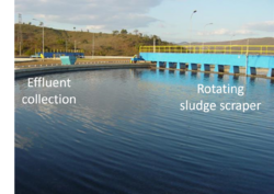 Sewage treatment (or domestic wastewater treatment, municipal wastewater treatment) is a type of wastewater treatment which aims to remove contaminants from sewage to produce an effluent that is suitable to discharge to the surrounding environment or an intended reuse application, thereby preventing water pollution from raw sewage discharges.[1] Sewage contains wastewater from households and businesses and possibly pre-treated industrial wastewater. There are a high number of sewage treatment processes to choose from. These can range from decentralized systems (including on-site treatment systems) to large centralized systems involving a network of pipes and pump stations (called sewerage) which convey the sewage to a treatment plant. For cities that have a combined sewer, the sewers will also carry urban runoff (stormwater) to the sewage treatment plant. Sewage treatment often involves two main stages, called primary and secondary treatment, while advanced treatment also incorporates a tertiary treatment stage with polishing processes and nutrient removal. Secondary treatment can reduce organic matter (measured as biological oxygen demand) from sewage, using aerobic or anaerobic biological processes. A so-called quarternary treatment step (sometimes referred to as advanced treatment) can also be added for the removal of organic micropollutants, such as pharmaceuticals. This has been implemented in full-scale for example in Sweden.[2]