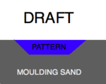 When making a pattern it is best to taper the edges so that the pattern can be removed without breaking the mold. This is called draft. The opposite of draft is an undercut where there is part of the pattern under the mold material, making it impossible to remove the pattern without damaging the mold.