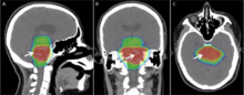 Intensity-modulated radiation therapy (IMRT) is an advanced type of high-precision radiation that is the next generation of 3DCRT.[60] IMRT also improves the ability to conform the treatment volume to concave tumor shapes,[5] for example when the tumor is wrapped around a vulnerable structure such as the spinal cord or a major organ or blood vessel.[61] Computer-controlled x-ray accelerators distribute precise radiation doses to malignant tumors or specific areas within the tumor. The pattern of radiation delivery is determined using highly tailored computing applications to perform optimization and treatment simulation (Treatment Planning). The radiation dose is consistent with the 3-D shape of the tumor by controlling, or modulating, the radiation beam's intensity. The radiation dose intensity is elevated near the gross tumor volume while radiation among the neighboring normal tissues is decreased or avoided completely. This results in better tumor targeting, lessened side effects, and improved treatment outcomes than even 3DCRT.