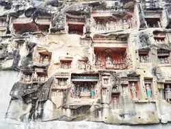 The Nankan Grottoes (also known as the South Niche Cliff Statues) (Chinese: 南龛石窟或南龛摩崖造像) is a tourist attraction in Bazhong, Sichuan, China .[1][2] The site is known for its 179 carved grottos which house almost 2,700 painted Buddhist statues.[3] It is located 1 km (0.62 mi) south of Bazhong city proper.[4] It is a part of the greater Nankan Mountain Scenic Area.[5][6]