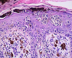 According to Scolyer et al.,[18] ALM "is usually characterized in its earliest recognisable form as single atypical melanocytes scattered along the junctional epidermal layer".