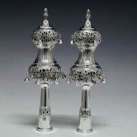 Finials used to decorate the top ends of the rollers of a Torah scroll