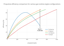 The energy efficiency ([math]\displaystyle{ \eta_o }[/math]) of jet engines installed in vehicles has two main components: