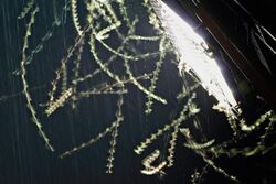 In cryptozoology and ufology, "rods" (also known as "skyfish", "air rods", or "solar entities") are elongated visual artifacts appearing in photographic images and video recordings. Some paranormal proponents claim them to be extraterrestrial lifeforms, extradimensional creatures, or very small UFOs. However, these artifacts appear naturally in video and outdoor photography as the result of an optical illusion due to motion blur, especially in interlaced video recording, and are typically afterimage trails of flying insects and their wingbeats.[1]