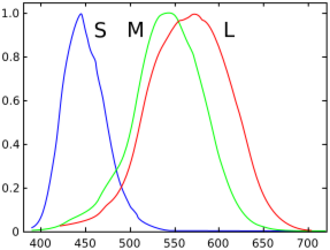 The spectral sensitivity curve of medium-wavelength ("M") cone cells overlaps those of short-wavelength ("S") and long-wavelength ("L") cone cells. Light of any wavelength that interacts with M cones also interacts with S or L cones, or both, to some extent. Therefore, no wavelength and no spectral power distribution excites only one sort of cone. If, for example, M cones could be excited alone, this would make the brain see an imaginary color greener than any physically possible green. Such a "hyper-green" color would be in the CIE 1931 color space chromaticity diagram in the blank area above the colored area and between the y-axis and the line x+y=1.