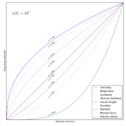 Magnitude estimation is a psychophysical method in which subjects assign perceived values of given stimuli. The relationship between stimulus intensity and perceptive intensity is described by Steven's power law.[6]