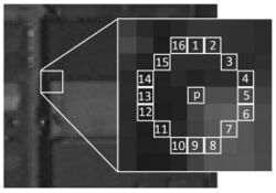 From Handwiki Features from accelerated segment test (FAST) is a corner detection method, which could be used to extract feature points and later used to track and map objects in many computer vision tasks. The FAST corner detector was originally developed by Edward Rosten and Tom Drummond, and was published in 2006.[1] The most promising advantage of the FAST corner detector is its computational efficiency. Referring to its name, it is indeed faster than many other well-known feature extraction methods, such as difference of Gaussians (DoG) used by the SIFT, SUSAN and Harris detectors. Moreover, when machine learning techniques are applied, superior performance in terms of computation time and resources can be realised. The FAST corner detector is very suitable for real-time video processing application because of this high-speed performance.