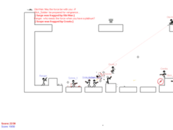 The Stick Soldiers is a series of PC games developed by T DOG. The game consists of a pair of keyboard-based, side-scrolling shooters. Players control a pencil-drawn stick soldier with various weapons, aiming to destroy other stick soldiers in their attempt to reach the specified frag limit. In Stick Soldiers 2 (abbreviated as "SS2"), rankings are point numbers, while the original Stick Soldiers ("SS," or "SS1") gives rankings as titles, with the first being "Cadet" and the last, "Fragmeister." Both games are generally very simple. It is possible to create different sprites for all games, and the second allows modification of weapon attributes, new weapons, and new sounds. A third game was in slow development for many years beginning shortly after the release of SS2, which has since been abandoned.