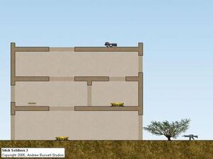 The next game in the series, Stick Soldiers 2 is a considerable expansion upon SS1, in that soldiers' movement is smoothly animated instead of using static bitmap images. It also adds more weaponry and versatility in modification (it allows weapons' attributes and sounds to be changed instead of graphics alone), bears a much more versatile map editor, and many more features, such as bounce pads, although some game features found in the first Stick Soldiers game (such as ricocheting bullets, the helmet powerup, and the popular Flak Cannon weapon) were not included in SS2. Many fan-made weapons, maps, mods, guides, and other miscellaneous files were once stored and accessible at the Stick Soldiers Files, a defunct file-sharing website.