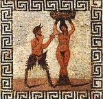 Tile mosaic of Pan and a hamadryad, found in Pompeii