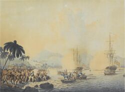 Tuvalu was first sighted by Europeans in January 1568 during the voyage of Spanish navigator Álvaro de Mendaña de Neira who sailed past the island of Nui, and charted it as Isla de Jesús (Spanish for "Island of Jesus") because the previous day was the feast of the Holy Name. Mendaña made contact with the islanders but did not land.[65] During Mendaña's second voyage across the Pacific he passed Niulakita in August 1595, which he named La Solitaria, meaning "the solitary one".[65][66]