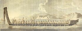 These wayfinding techniques, along with outrigger canoe construction methods, were kept as guild secrets. Generally, each island maintained a guild of navigators who had very high status; in times of famine or difficulty these navigators could trade for aid or evacuate people to neighboring islands. On his first voyage of Pacific exploration Cook had the services of a Polynesian navigator, Tupaia, who drew a hand-drawn chart of the islands within 3,200 km (2,000 mi) radius (to the north and west) of his home island of Ra'iatea. Tupaia had knowledge of 130 islands and named 74 on his chart.[93] Tupaia had navigated from Ra'iatea in short voyages to 13 islands. He had not visited western Polynesia, as since his grandfather's time the extent of voyaging by Raiateans has diminished to the islands of eastern Polynesia. His grandfather and father had passed to Tupaia the knowledge as to the location of the major islands of western Polynesia and the navigation information necessary to voyage to Samoa, Tonga and Melanesian island of Fiji.[94] As the Admiralty orders directed Cook to search for the "Great Southern Continent", Cook ignored Tupaia's chart and his skills as a navigator. To this day, original traditional methods of Polynesian Navigation are still taught in the Polynesian outlier of Taumako Island in the Solomon Islands.