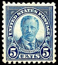 Roosevelt has appeared on five U.S. Postage stamps, the first being issued in 1922.[380] Roosevelt has also been portrayed in films and television series such as Brighty of the Grand Canyon, The Wind and the Lion, Rough Riders, My Friend Flicka,[381] and Law of the Plainsman. Robin Williams portrayed Roosevelt in the form of a wax mannequin that comes to life in Night at the Museum and its sequels Night at the Museum: Battle of the Smithsonian and Night at the Museum: Secret of the Tomb.[382][383][384] Roosevelt appears as the leader of the American civilization in the 2016 Firaxis Games-developed video game Civilization VI.[385]