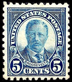 Roosevelt has appeared on five U.S. Postage stamps, the first being issued in 1922.[272] Roosevelt has also been portrayed in films and television series such as Brighty of the Grand Canyon, The Wind and the Lion, Rough Riders, My Friend Flicka,[273] and Law of the Plainsman. Robin Williams portrayed Roosevelt in the form of a wax mannequin that comes to life in Night at the Museum and its sequels Night at the Museum: Battle of the Smithsonian and Night at the Museum: Secret of the Tomb.Lua error: Internal error: The interpreter has terminated with signal "24".Lua error: Internal error: The interpreter has terminated with signal "24".[274][275] Roosevelt appears as the leader of the American civilization in the 2016 Firaxis Games-developed video game Civilization VI.[276]