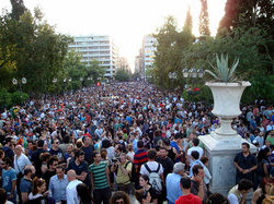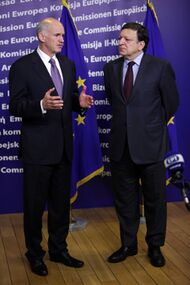 The crisis led to a loss of confidence in the Greek economy, indicated by a widening of bond yield spreads and rising cost of risk insurance on credit default swaps compared to the other Eurozone countries, particularly Germany.[13][14] The government enacted 12 rounds of tax increases, spending cuts, and reforms from 2010 to 2016, which at times triggered local riots and nationwide protests. Despite these efforts, the country required bailout loans in 2010, 2012, and 2015 from the International Monetary Fund, Eurogroup, and the European Central Bank, and negotiated a 50% "haircut" on debt owed to private banks in 2011, which amounted to a €100bn debt relief (a value effectively reduced due to bank recapitalisation and other resulting needs).