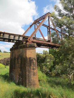 Brick abutment supporting disused tramway over the Yass River in Yass, New South Wales