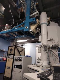 - ↑ Hinks, J.A. (1 December 2009). "A review of transmission electron microscopes with in situ ion irradiation". Nuclear Instruments and Methods in Physics Research Section B: Beam Interactions with Materials and Atoms 267 (23–24): 3652–3662. doi:10.1016/j.nimb.2009.09.014. Bibcode: 2009NIMPB.267.3652H.