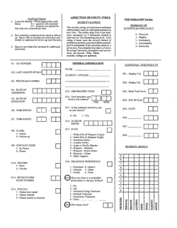 The third version of ASI was established in 1980. This version of ASI adopted a ten-point severity rating which is assessed during patients' interviews with clinical staff. But clinical staff complained that the rating is difficult due to insufficient summary information. Thus, the interviewer severity rating (ISR) was proposed. However, several drawbacks of ISR, such as subjective data and low flexibility made it hard to apply in clinical practice. With this concern, the quantitative Composite scores (CSs), which were derived from clinical trials and errors, were applied. Both CSs and ISR have shown test-retest reliability and were used in ASI (details refer to the scoring system).[1][5]