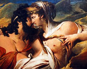 The section of the Iliad that ancient editors called the Dios apate (the "Deception of Zeus") stands apart from the remainder of Book XIV. In this episode, Hera makes an excuse to leave her divine husband Zeus; in her deception speech she declares that she wishes to go to Oceanus, "origin of the gods", and Tethys the "mother". Instead Hera beautifies herself in preparation for seducing Zeus and obtains the help of Aphrodite. In the climax of the episode Zeus and Hera make love hidden within a golden cloud on the summit of Mount Ida. By distracting Zeus, Hera makes it possible for the Greeks to regain the upper hand in the Trojan War.[1]