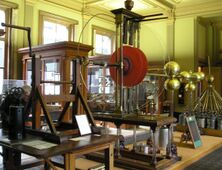 In the 1830s, Georg Ohm possessed a machine similar to the Van Marum machine for his research (which is now at the Deutsches Museum, Munich, Germany). In 1840, the Woodward machine was developed by improving the 1768 Ramsden machine, placing the prime conductor above the disk(s). Also in 1840, the Armstrong hydroelectric machine was developed, using steam as a charge carrier.