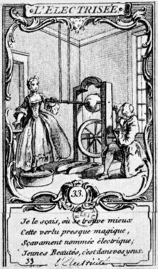 The first electrostatic generators are called friction machines because of the friction in the generation process. A primitive form of frictional machine was invented around 1663 by Otto von Guericke, using a sulphur globe that could be rotated and rubbed by hand. It may not actually have been rotated during use and was not intended to produce electricity (rather cosmic virtues),[1] but inspired many later machines that used rotating globes. Isaac Newton suggested the use of a glass globe instead of a sulphur one.[2] About 1706 Francis Hauksbee improved the basic design,[3] with his frictional electrical machine that enabled a glass sphere to be rotated rapidly against a woollen cloth.[4]