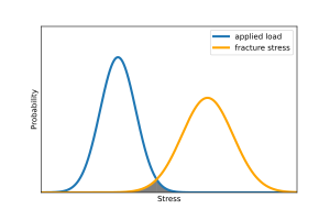 Consider the classical approach to performing tensile testing in materials. The stress experienced by a material is given as a singular value (i.e., force applied divided by the cross-sectional area perpendicular to the loading axis). The yield stress, which is the maximum stress a material can support before plastic deformation, is also given as a singular value. Under this approach, there is a 0% chance of material failure below the yield stress, and a 100% chance of failure above it. However, these assumptions break down in the real world.