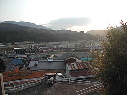 View of Fukuoka's family farm (center right) and hill in Iyo, Ehime