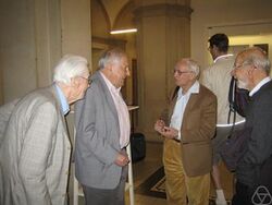 Beno Eckmann, Peter Hilton, Jean-Pierre Serre, and André Haefliger in Zürich in 2007