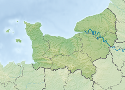 The discovery of objects such as the golden Gallic helmet of Amfreville-sous-les-Monts or the iron one from the Louviers museum, as well as sites such as the large Pîtres necropolis[8] (Eure), with its cremation urns, coiled swords and traces of chariot tombs, or the necropolis of Ifs (Calvados), dating from the end of the Hallstatt period or the beginning of the La Tène period, testify to Celtic presence in Normandy. The Celtic peoples of present-day Normandy were part of Armorica, a confederation of culturally close peoples along the shores of the English Channel and the Atlantic Ocean, from the estuary of the Seine to that of the Loire.