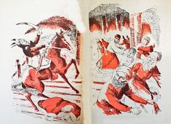After finishing off Merv, Tolui headed westwards, attacking the cities of Nishapur and Herat.[42] Nishapur fell after only three days; here, Tokuchar, a son-in-law of Genghis was killed in battle, and Tolui put to the sword every living thing in the city, including the cats and dogs, with Tokuchar's widow presiding over the slaughter.[17] After Nishapur's fall, Herat surrendered without a fight and was spared.