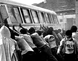 Carlos Andrés Pérez based his campaign for the 1988 Venezuelan general election in his legacy of abundance during his first presidential period[47] and initially rejected liberalization policies.[48] Venezuela's international reserves were only US$300 million at the time of Pérez' election into the presidency; Pérez decided to respond to the debt, public spending, economic restrictions and rentier state by liberalizing the economy[47] and proceeded to implement Washington consensus reforms.[49][48] He announced a technocratic cabinet and a group of economic policies to fix macroeconomic imbalances known as El Gran Viraje (es) (English: The Great Turn), called by detractors as El Paquetazo Económico (English: The Economic Package). Among the policies there was the reduction of fuel subsidies and the increase of public transportation fares by thirty percent (VEB 16 Venezuelan bolívares, or US$0.4).[50][51][52] The increase was supposed to be implemented on 1 March 1989, but bus drivers decided to apply the price rise on 27 February, a day before payday in Venezuela. In response, protests and rioting began on the morning of 27 February 1989 in Guarenas, a town near Caracas;[53] a lack of timely intervention by authorities, as the Caracas Metropolitan Police (es) was on a labor strike, led to the protests and rioting quickly spreading to the capital and other towns across the country.[54][48][49]