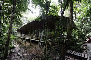Tiputini Biodiversity Station (TBS) is a scientific field research center in the Ecuadorian Amazon. It was established in 1995 by Universidad San Francisco de Quito in collaboration with Boston University, and is jointly managed by them as a center of education, research and conservation. A higher diversity of reptiles, amphibians, insects, birds and bats has been found there than anywhere else in South America, and possibly the world.[1] It is located in the province of Orellana, about 280 km ESE from Quito, the capital city of Ecuador [ ⚑ ] 0°38′18″S 76°9′0″W / 0.63833°S 76.15°W. It is located on the northern bank of the Tiputini River, and although separated from the Yasuní National Park by the river, the station forms part of the Yasuní Biosphere Reserve.